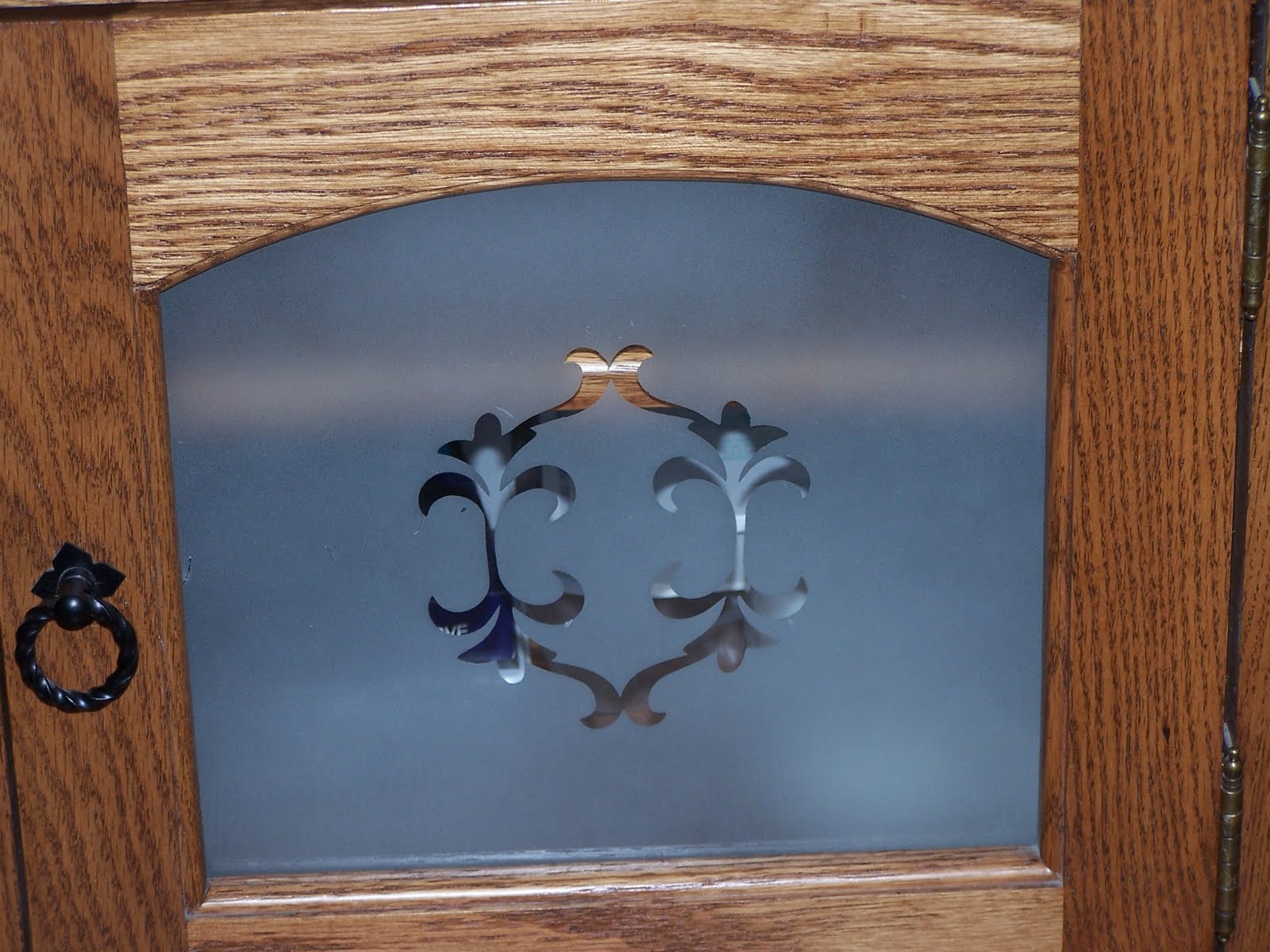 Since we were working with a fixed area we could only get a certain size! So DH built a little shelf for it to sit on with the DVR underneath! But then I noticed how ugly the glass doors looked with all the 'stuff' inside!